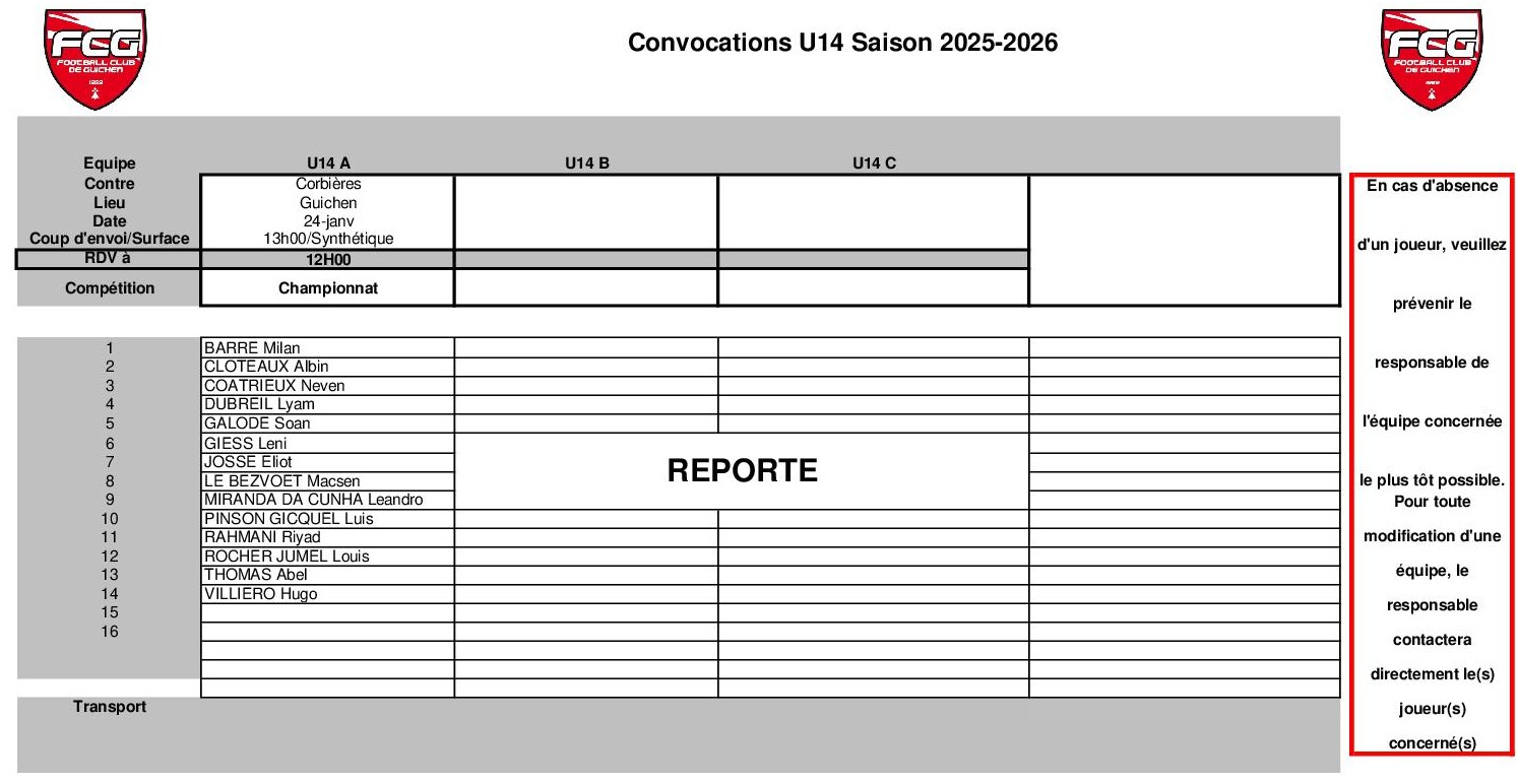 Responsables saison 2025-2026 : JC Pengam 06-52-38-81-37 – Sebastien Hervé