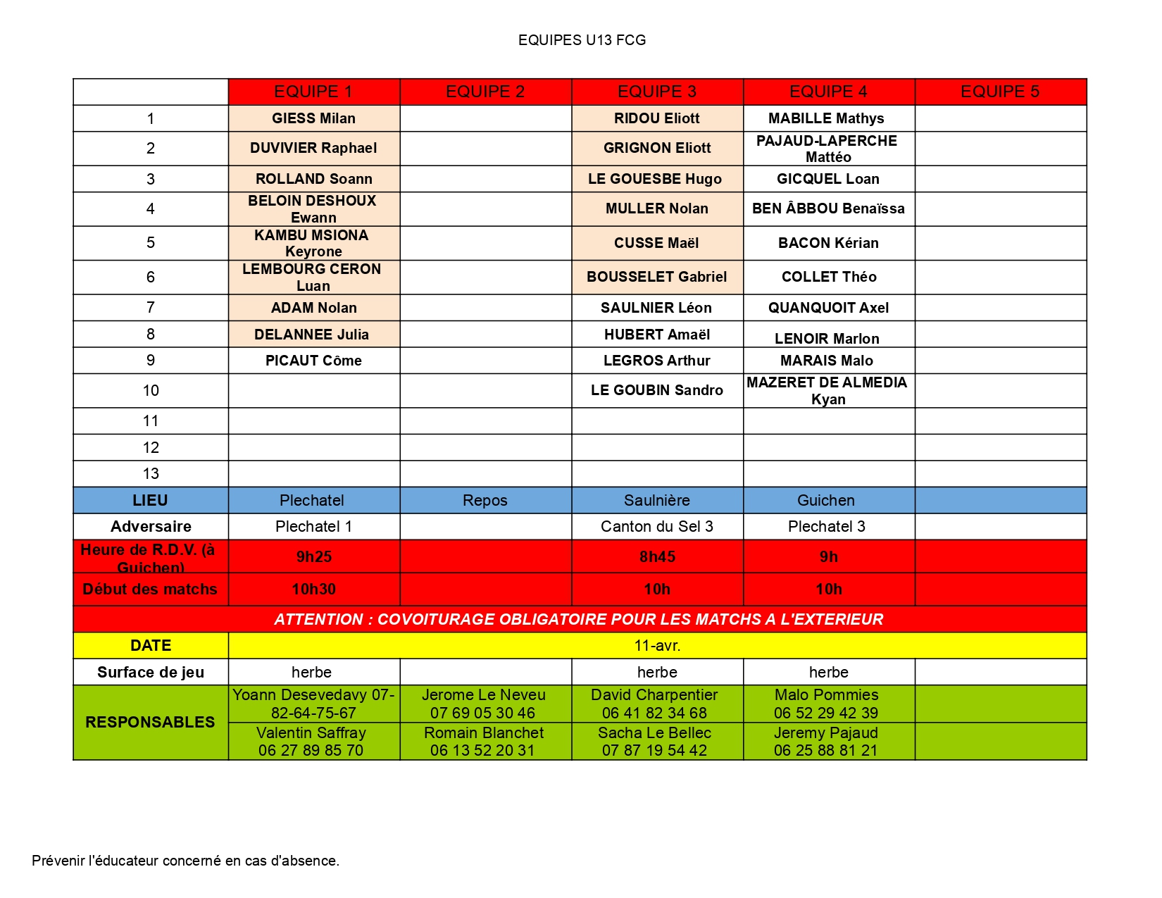 Match : Samedi 11 Avril