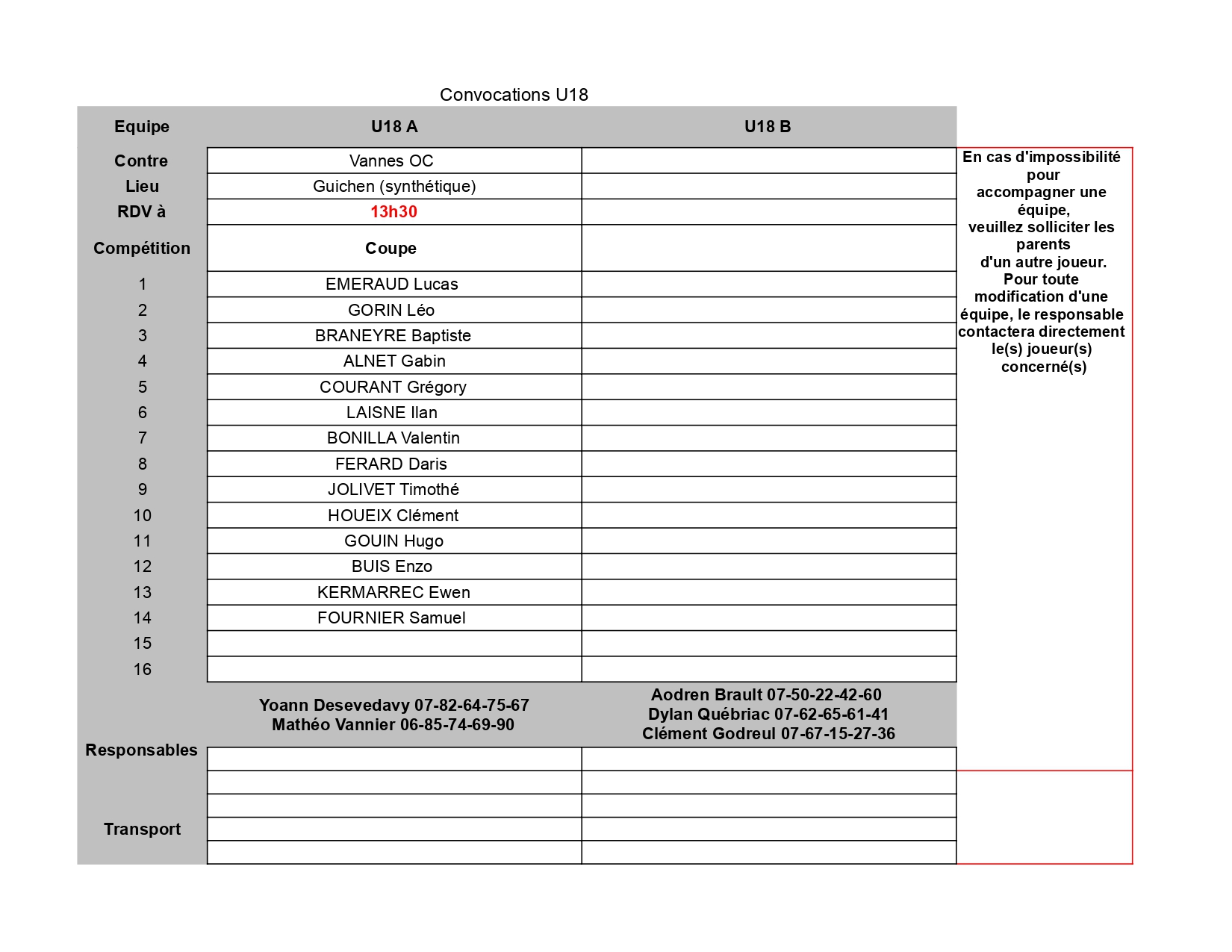 Responsable Catégorie : Desevedavy Yoann 07-82-64-75-67